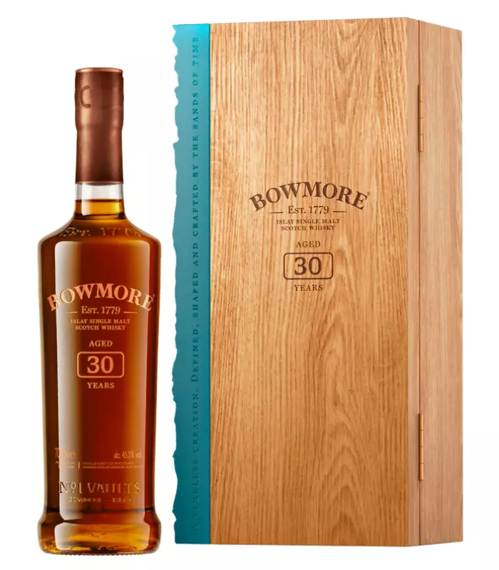 Bowmore No. 1 Vaults 30 Year Old Single Malt Scotch Whisky represents the inaugural batch of an annual release, a testament to the enduring legacy of Bowmore’s whisky-making excellence. Distilled in 1989 and meticulously nurtured for three decades, this rare single malt has matured in the finest Sherry hogsheads and Bourbon barrels. Bottled at a cask strength of 45.3%, this 30-Year-Old whisky embodies Bowmore’s signature rich fruity and subtly smoky style.