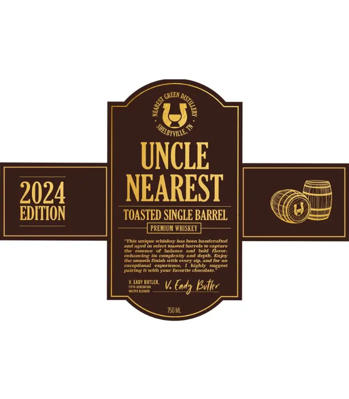 The Uncle Nearest Toasted Single Barrel Tennessee Whiskey 2024 Edition is unlike any other whiskey in the Uncle Nearest collection. Crafted to showcase a uniquely bold and nuanced flavor, this single barrel is bottled at barrel strength, capturing the full essence of its distinctive character. With a triple filtration process and the legacy of Master Distiller Nearest Green behind it, this Tennessee whiskey delivers an unmatched experience in every sip. Distilled, aged, and bottled in Middle Tennessee, this whiskey is a true tribute to the excellence and craftsmanship that Uncle Nearest embodies.
